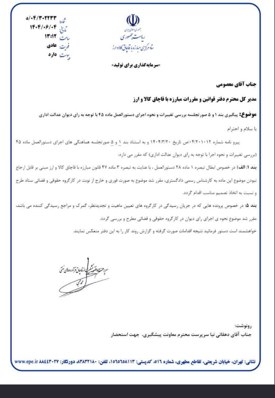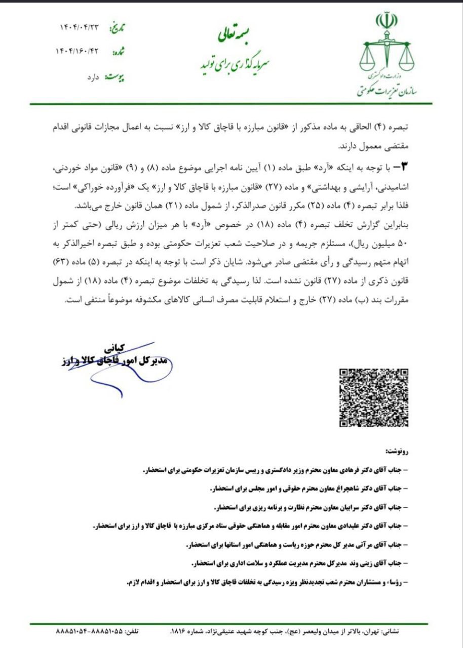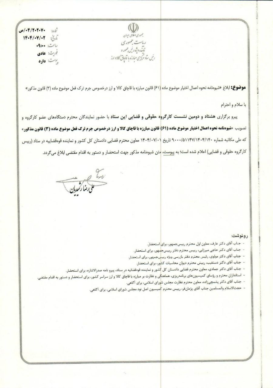 تصویر نامه اتاق اصناف مشهد با موضوع ابلاغ شیوه نامه نحوه اعمال اختیار موضوع ماده (۶۱) قانون مبارزه با قاچاق کالا و ارز در خصوص جرم ترک فعل موضوع ماده (۳) جهت استحضار همکاران گرامی