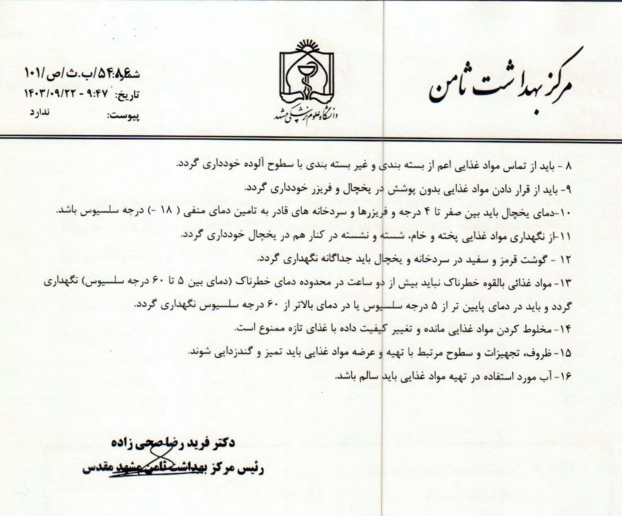 لطفا نکات آموزشی مندرج در نامه مرکز بهداشت ثامن را مطالعه فرمایید.