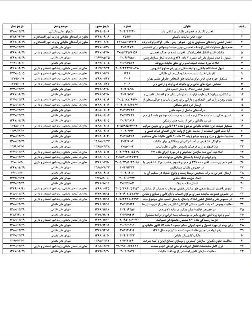 📃 فهرست بخشی از مقررات منسوخ شده سازمان امور مالیاتی کشور