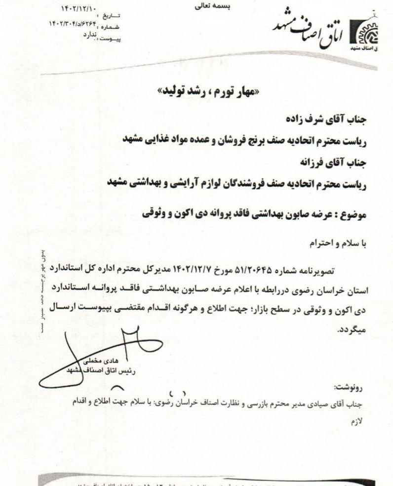 قابل توجه اعضای گرامی به ویژه همکاران محترم در رسته عمده فروشی مواد شوینده پاک کننده و سلولزی