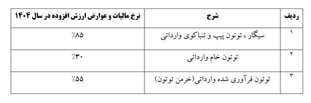 🚬نرخ مالیات و عوارض ارزش افزوده دخانیات اعلام شد.